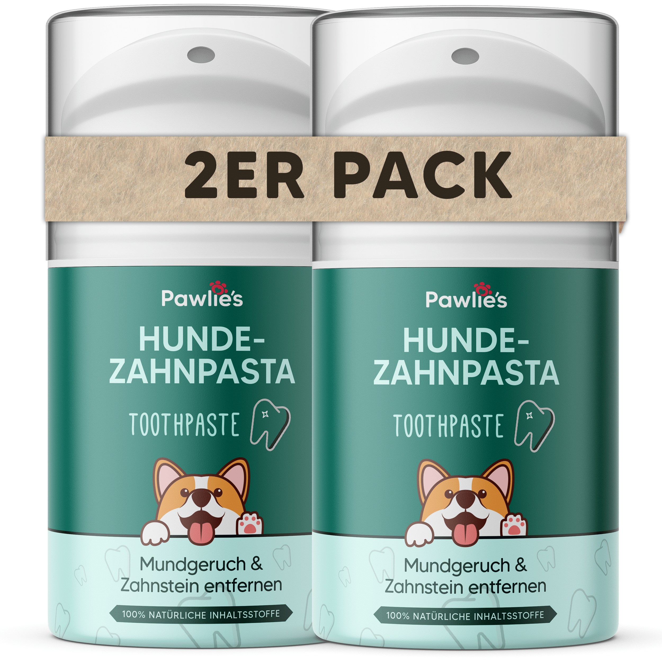 Doppelpack unserer natürlichen Zahnpasta für Hunde. Für die tägliche Zahnpflege - mit natürlichen Inhaltsstoffen, die Zahnbelag reduzieren und für frischen Atem sorgen.