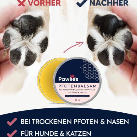 Pfoten und krallen erholen sich gut mit der Creme. Mein Hund genießt es richtig, wenn sie damit einigecremt wird. Tolle Zusammensetzung.